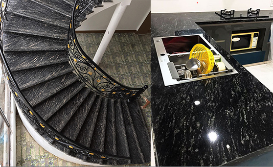 Loại đá này phù hợp với tất cả các hạng mục đặc biệt làm bàn bếp, lát cầu thang, lavabo, ốp tường… Với bề mặt đen bóng xen kẽ những đường vân trắng sẽ tô điểm cho không gian thêm vẻ đẹp huyền bí và sang trọng.